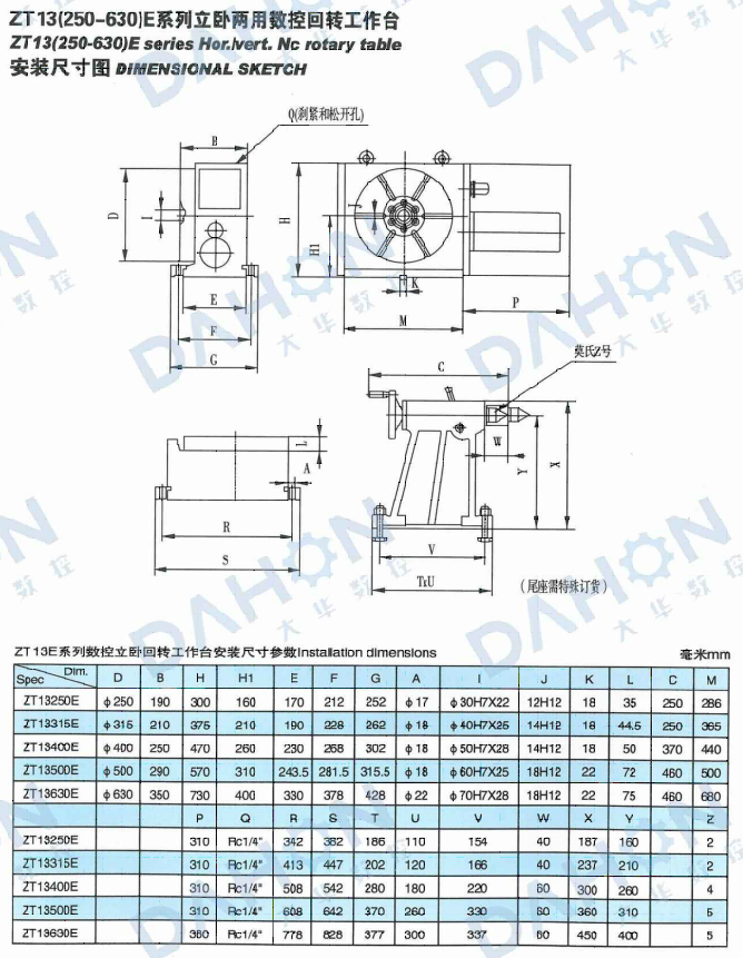 煙臺(tái)ZT13(250-630)E/EL系列立臥兩用數(shù)控轉(zhuǎn)臺(tái)